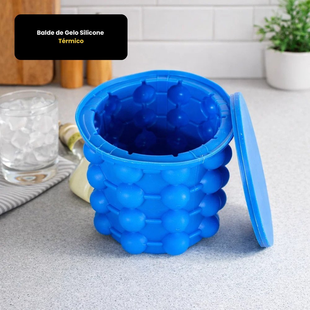 Silicone Flexível High-Grade: Material de alta durabilidade que não racha no frio intenso e permite extrair o gelo apenas pressionando as laterais do balde.