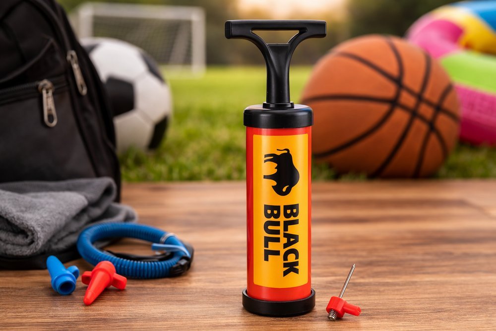 Sistema de Inflagem por Pressão Manual: Mecanismo de fluxo contínuo que permite encher objetos rapidamente, ideal para bolas de futebol, vôlei e basquete.