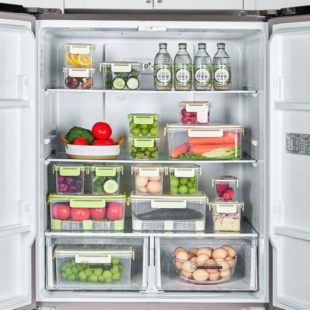 • Kit Organizador de 5 Peças: Conjunto estratégico composto por 1 pote grande, 2 médios e 2 pequenos, ideal para categorizar sua despensa ou geladeira.