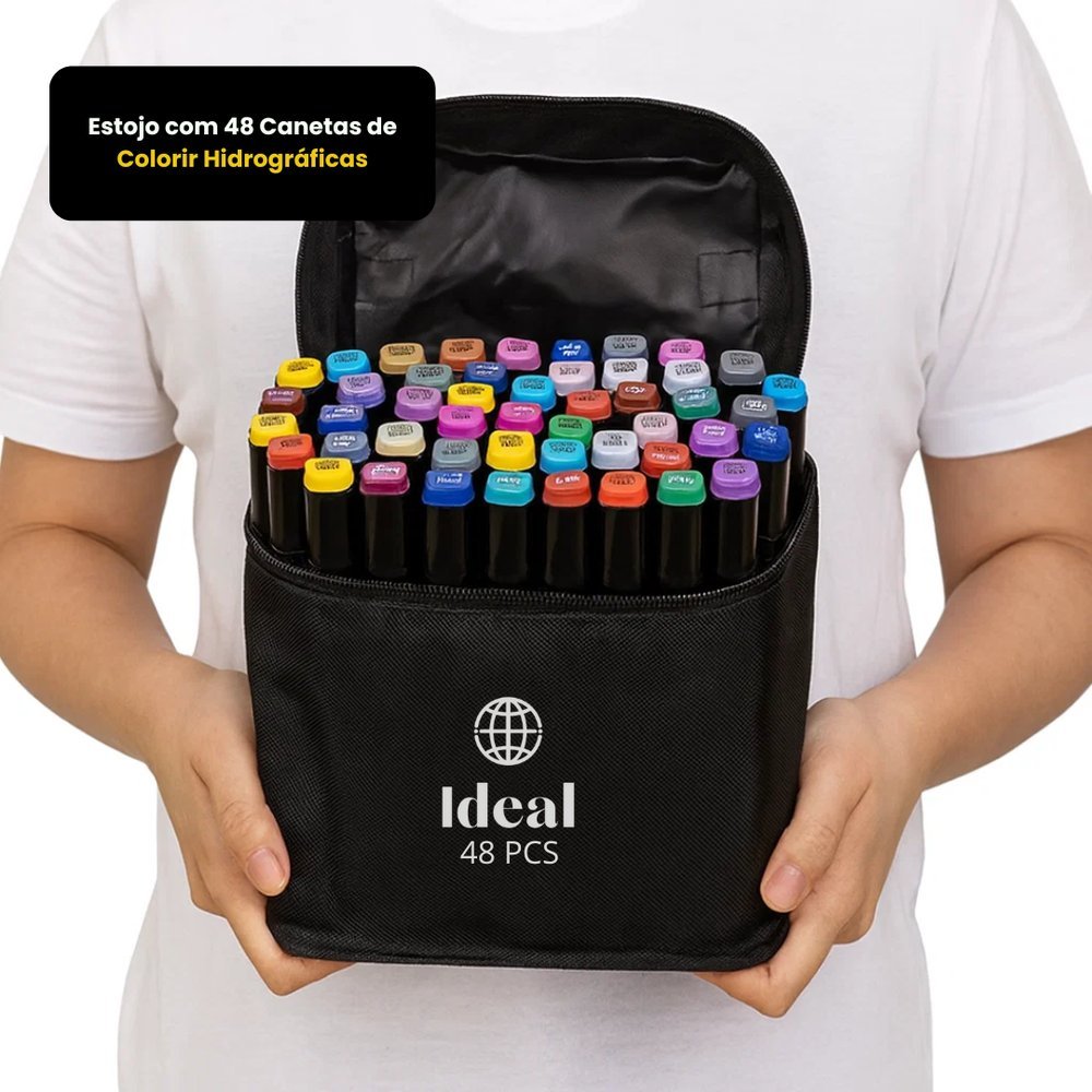 Estojo com 48 Canetas de Colorir Hidrográficas