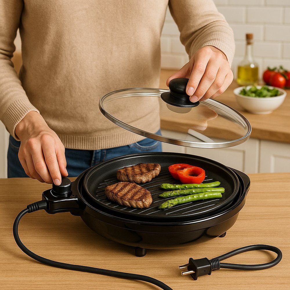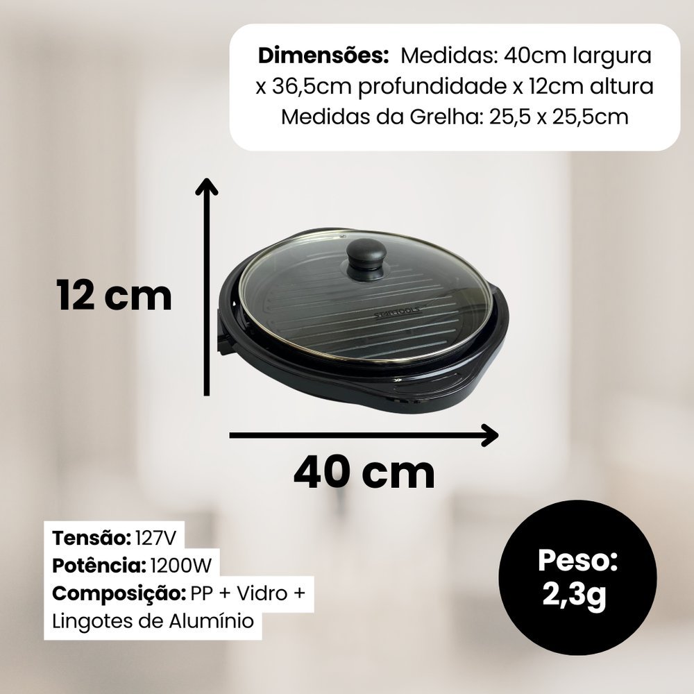 Grill Elétrico Redondo Premium com Termostato 127V – Preta