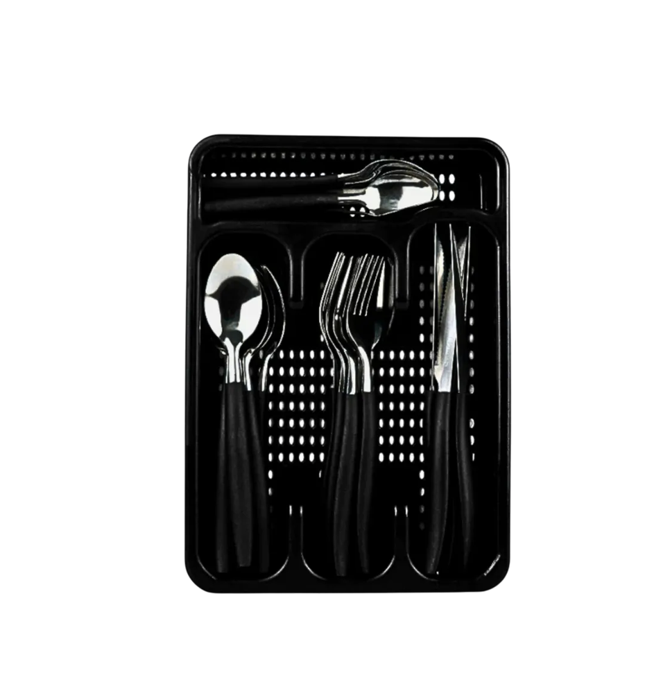 O Jogo de Faqueiro Inox Com Gaveteiro 25 Peças é o produto ideal que alinha organização à modernidade. É um jogo completo, composto por 25 peças de talheres com um design sofisticado de inox, e cabos produzidos com polipropileno para maior durabilidade e controle durante o manuseio. Acompanha um porta-talher de gaveta (Gaveteiro) que, além de manter sua gaveta ou balcão organizado, é versátil e pode ser usado como um escorredor dos talheres.