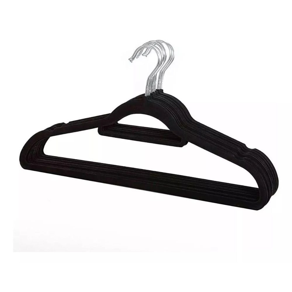 Contém: 01 Kit 10 Unidades Cabides Slim Veludo Preto.