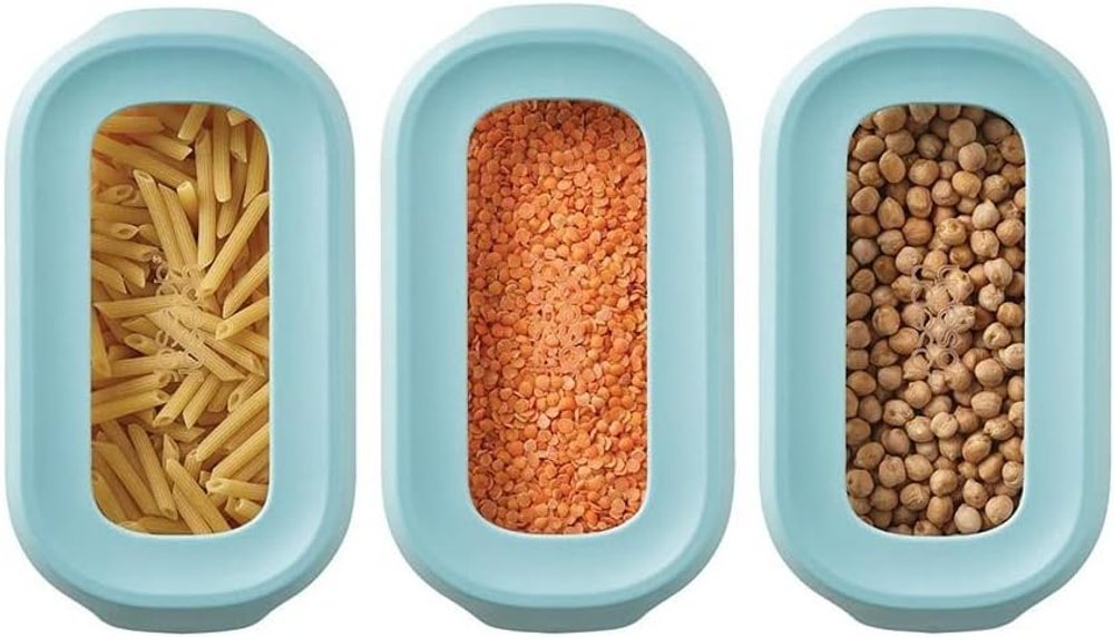 Trio de Capacidade Padronizada: Inclui 3 potes de 900ml cada, oferecendo o volume ideal para pacotes padrão de mantimentos de uso diário.