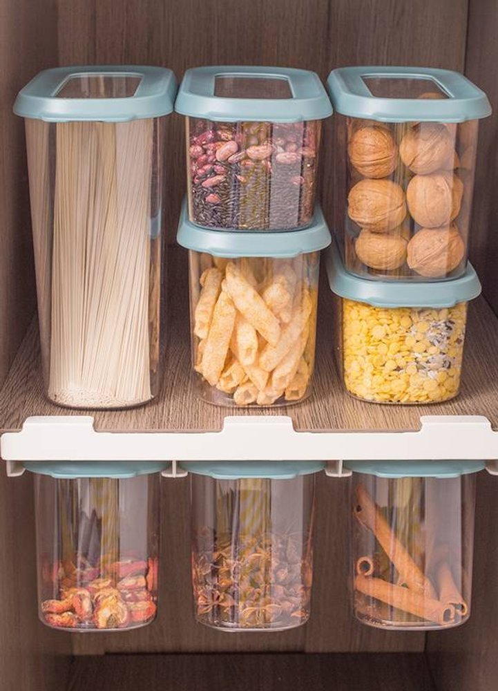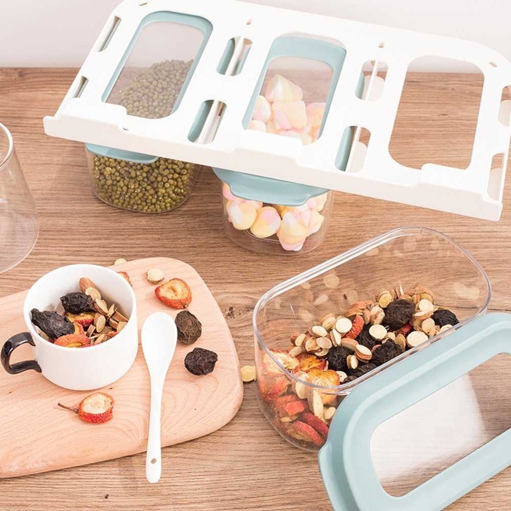 Kit de Potes com Suporte, Pote Hermético Suspenso, Porta Mantimentos Verde, Organizador de Armário, XpressaShop, Pote 900ml, Kit Organização Cozinha, Utilidades Domésticas, SKU TRC0906.