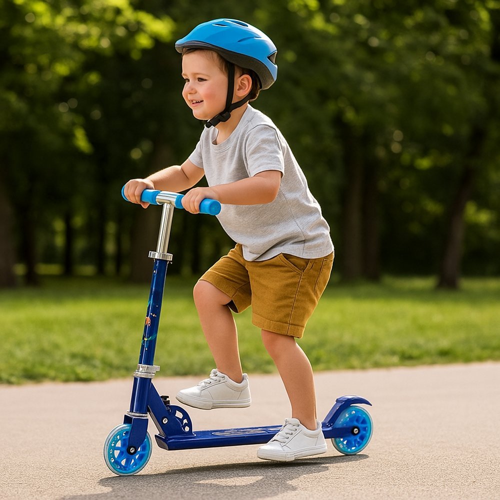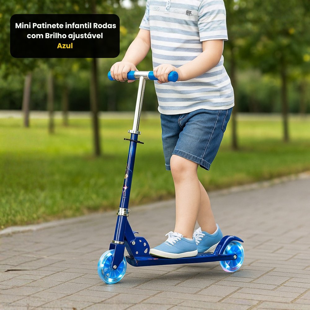Mini Patinete infantil Rodas com Brilho ajustável – Azul