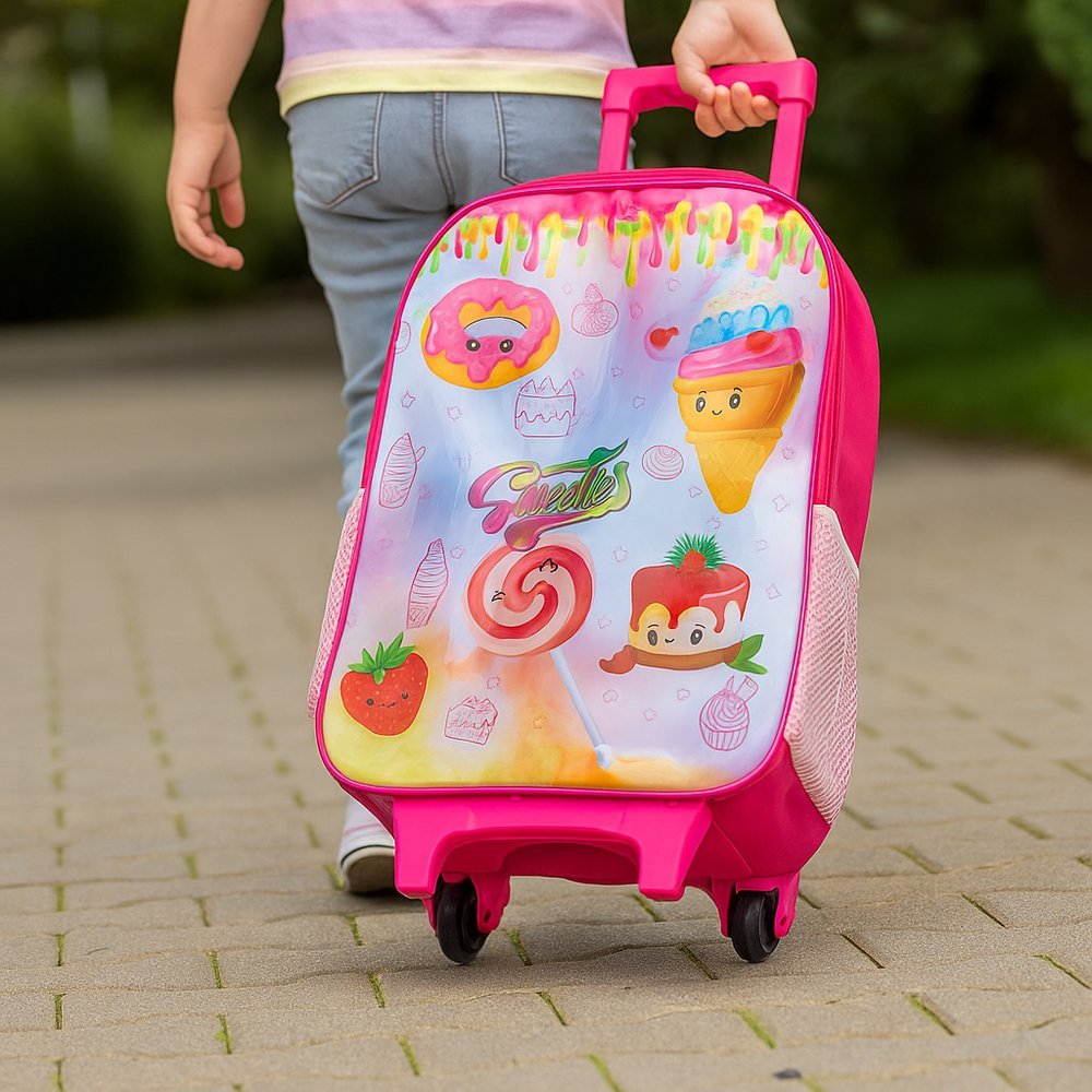 A Mochila de Rodinhas Infantil Sweeties da XpressaShop é a combinação perfeita de encanto, doçura e praticidade para a rotina escolar. Com um design inspirado no universo lúdico dos doces e cores suaves, ela transforma o transporte do material escolar em um momento de diversão. Equipada com um sistema de rodinhas resistentes e puxador retrátil, esta mochila evita o esforço excessivo nas costas das crianças, garantindo uma postura saudável e maior facilidade de locomoção nos corredores da escola ou em viagens. Seu amplo espaço interno e bolsos organizadores permitem que cadernos, estojos e lanches fiquem sempre em ordem, com o charme que só a linha Sweeties oferece.