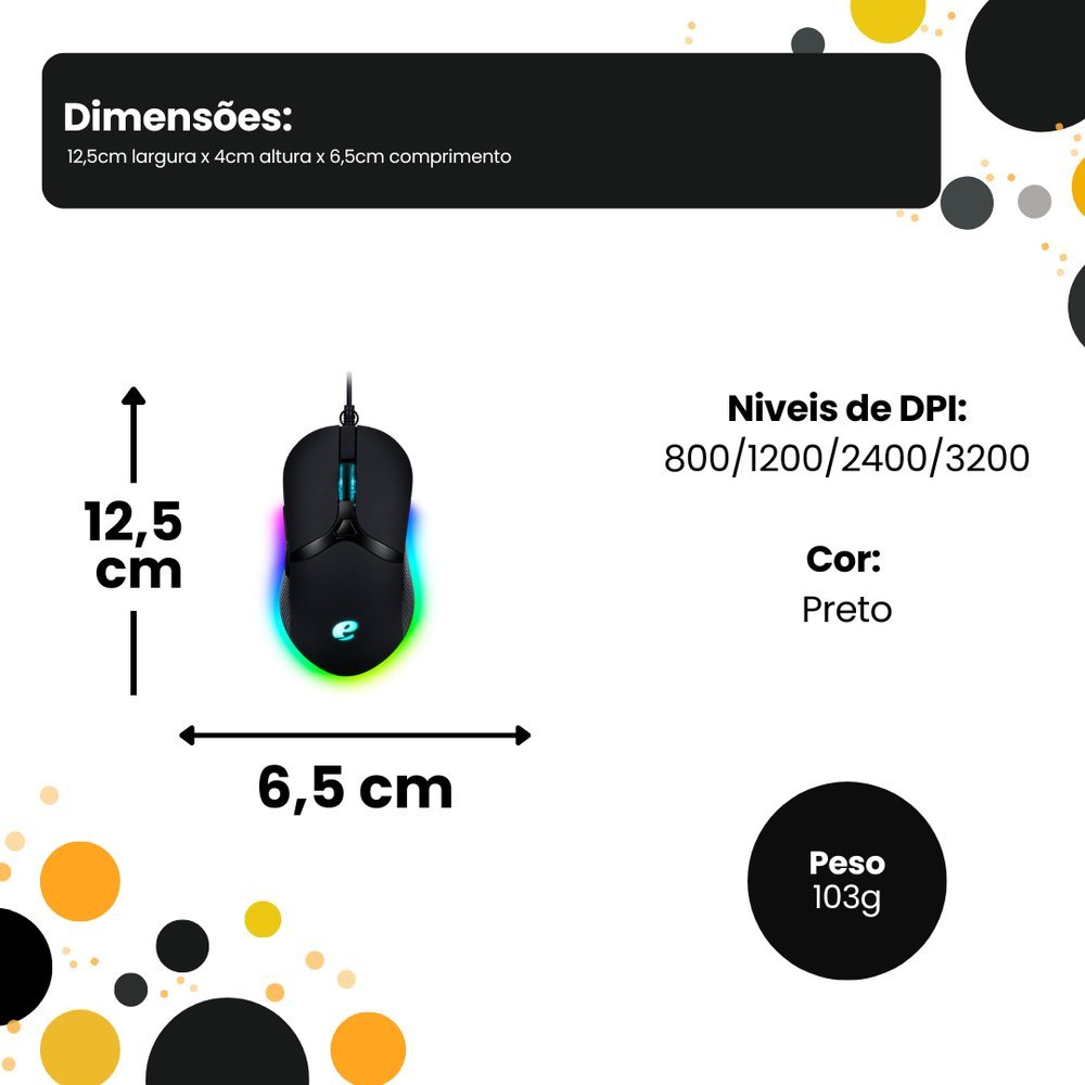 • Sensor de Alta Precisão Ajustável: Quatro níveis de DPI selecionáveis para adaptar a velocidade do cursor conforme a sua necessidade de navegação ou tarefa.