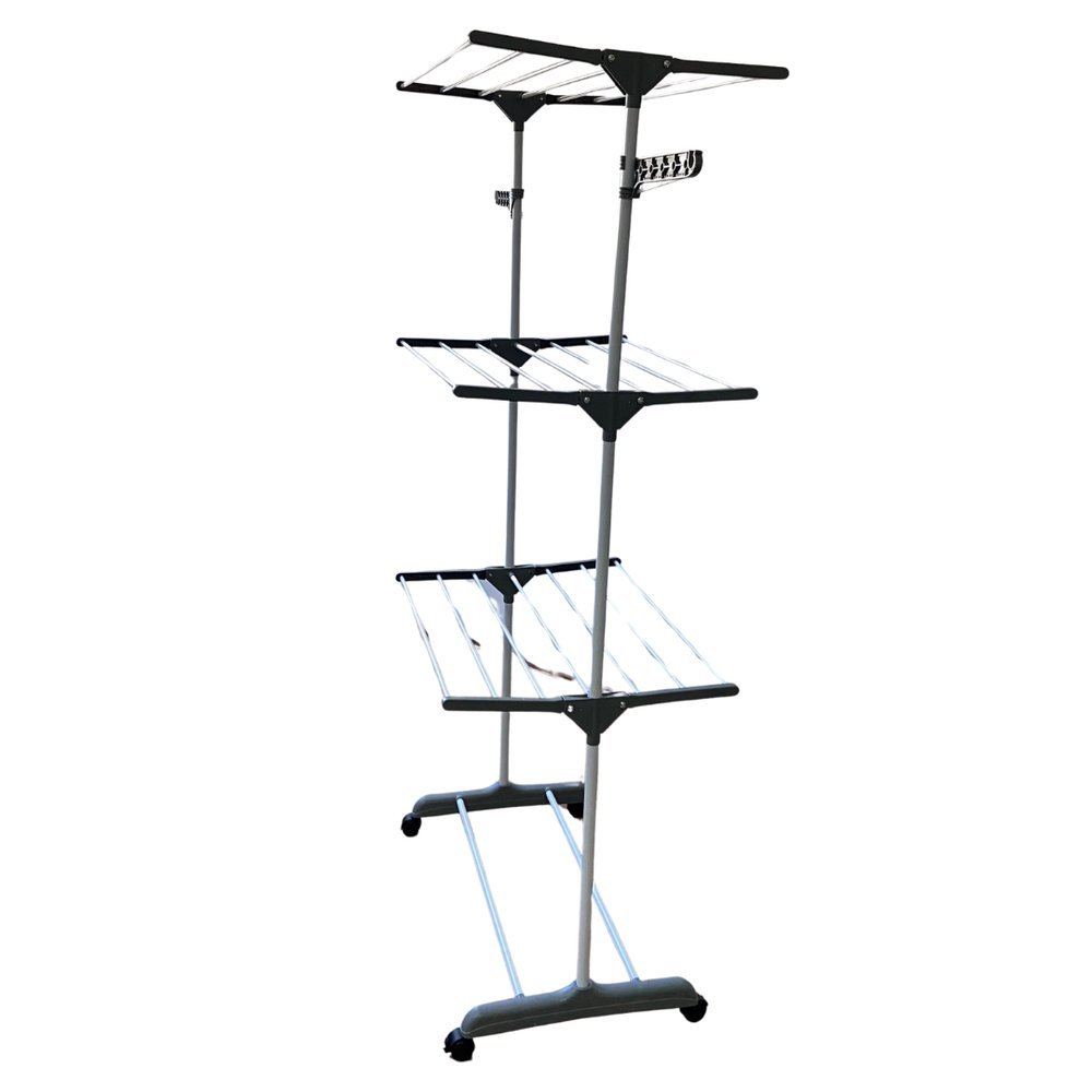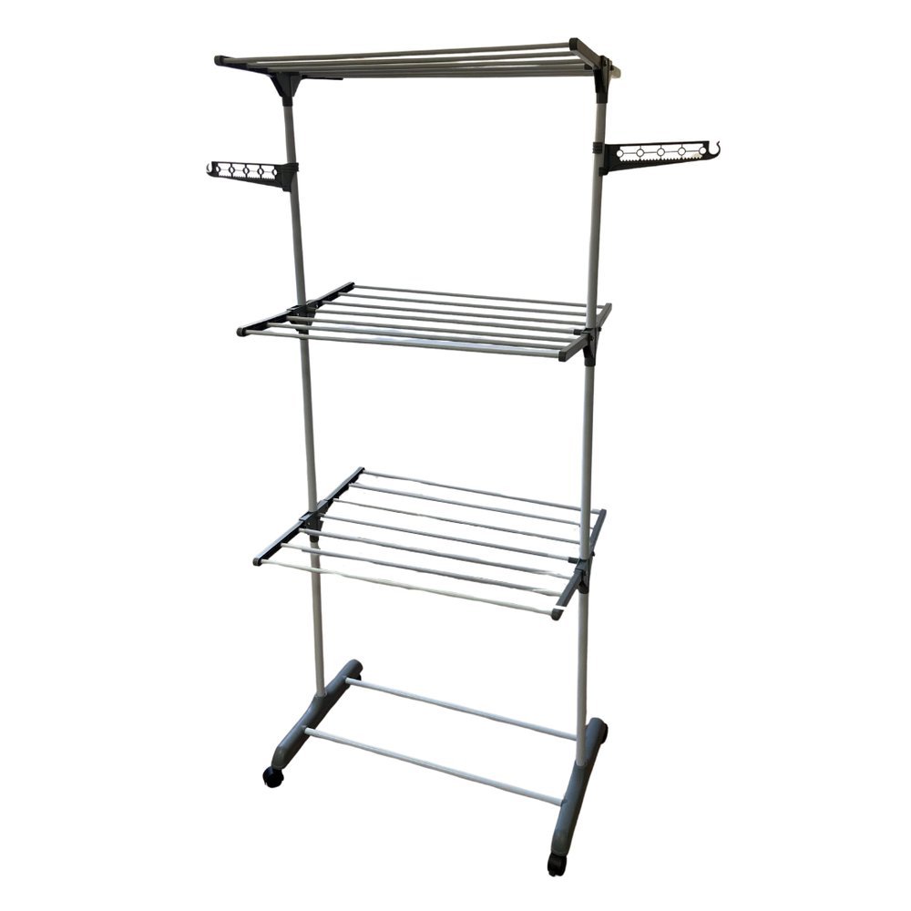 Multi varal de chão com bandejas e 3 andares Com Cabideiro- Cinza