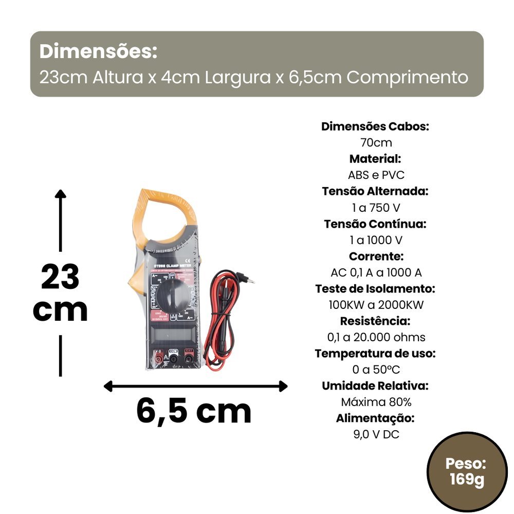 Contém: 01 Multímetro Digital e 01 Par de Pontas de Prova.
