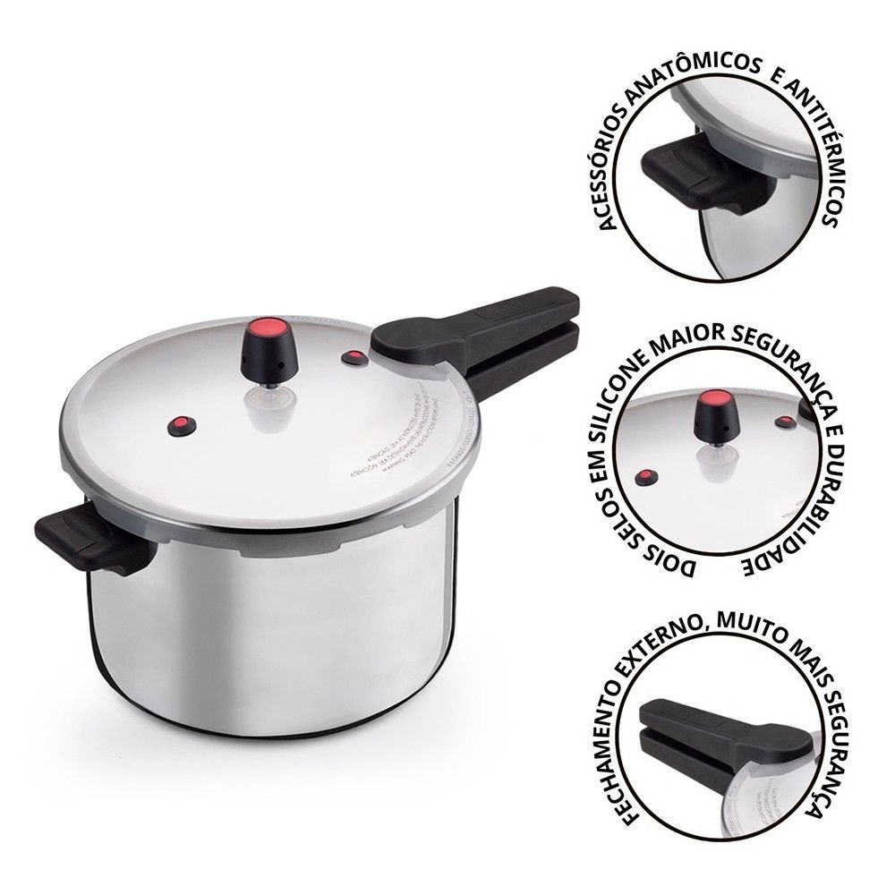 Contém: 01 Panela de Pressão 10L com tampa de fechamento externo.