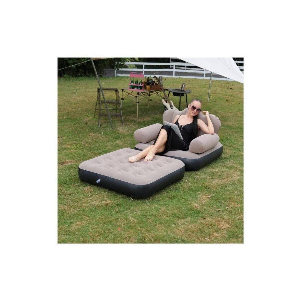 Poltrona Inflável com Puff, Sofá Cama Inflável, Poltrona de Camping, Colchão Inflável Individual, XpressaShop, Mobiliário Portátil, Lazer e Viagem, Poltrona Aveludada, Utilidades Domésticas, SKU TRC1077.