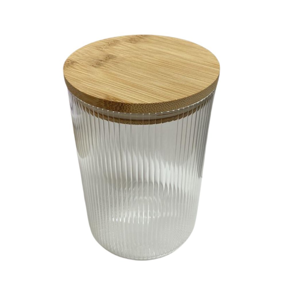 Pote de Vidro Borossilicato Listrado com Tampa de Bambu 1L