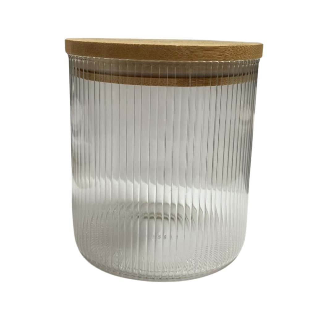 Pote de Vidro Borossilicato Listrado com Tampa de Bambu 700ml