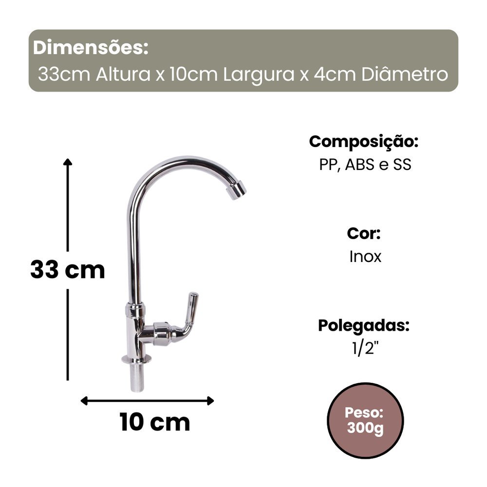 Torneira de Cozinha, Torneira de Mesa, Torneira Inox, Torneira Bica Alta, Utensílios de Cozinha, Startools, Torneira 1/2 Polegada, Reforma e Construção, SKU ST1095-TMIX.